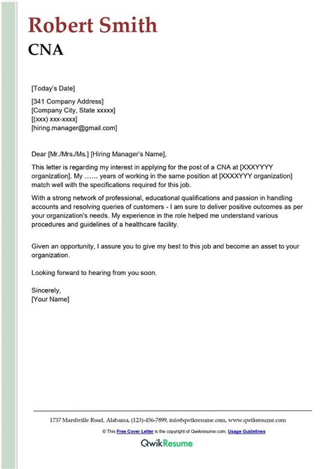 Your cna cover letter is your assistant to getting you a certified nursing. Learn more about how you can create an effective nursing assistant cover letter by exploring cover letters for nursing assistants. Applying for a new cna position?
